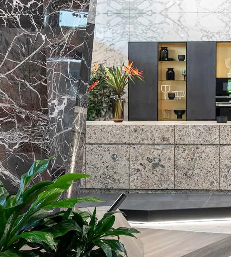 Siamo sarti della materia. La nostra missione è portare design e qualità italiane negli ambienti di tutto il mondo, liberando la creatività del progettista da limiti e costrizioni, grazie alla nostra selezione di grandi lastre in grès porcellanato.