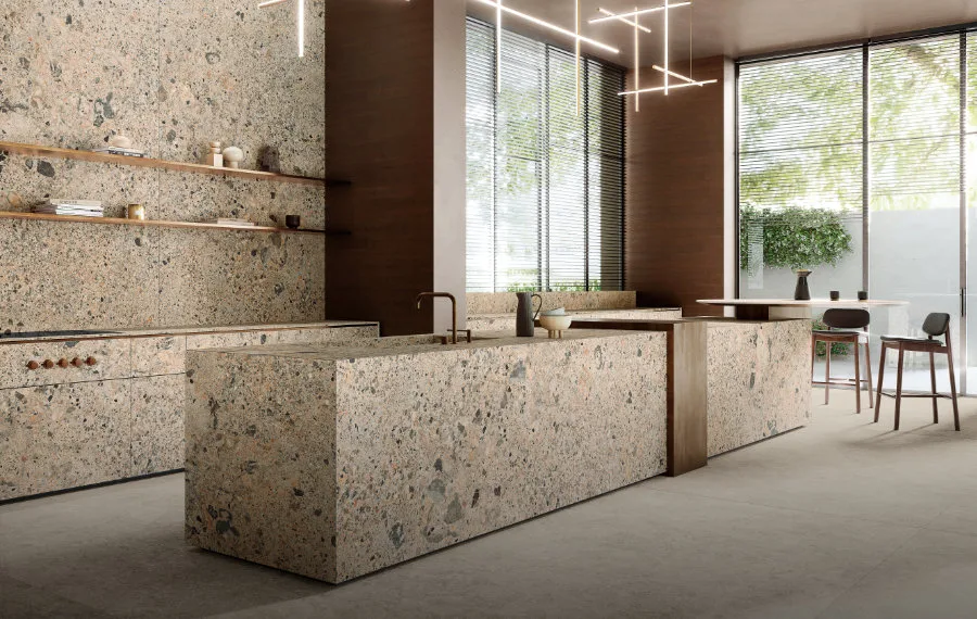 Grandi lastre per top cucina e piani per il bagno, superfici per elementi d’arredo, pavimento e rivestimenti a parete