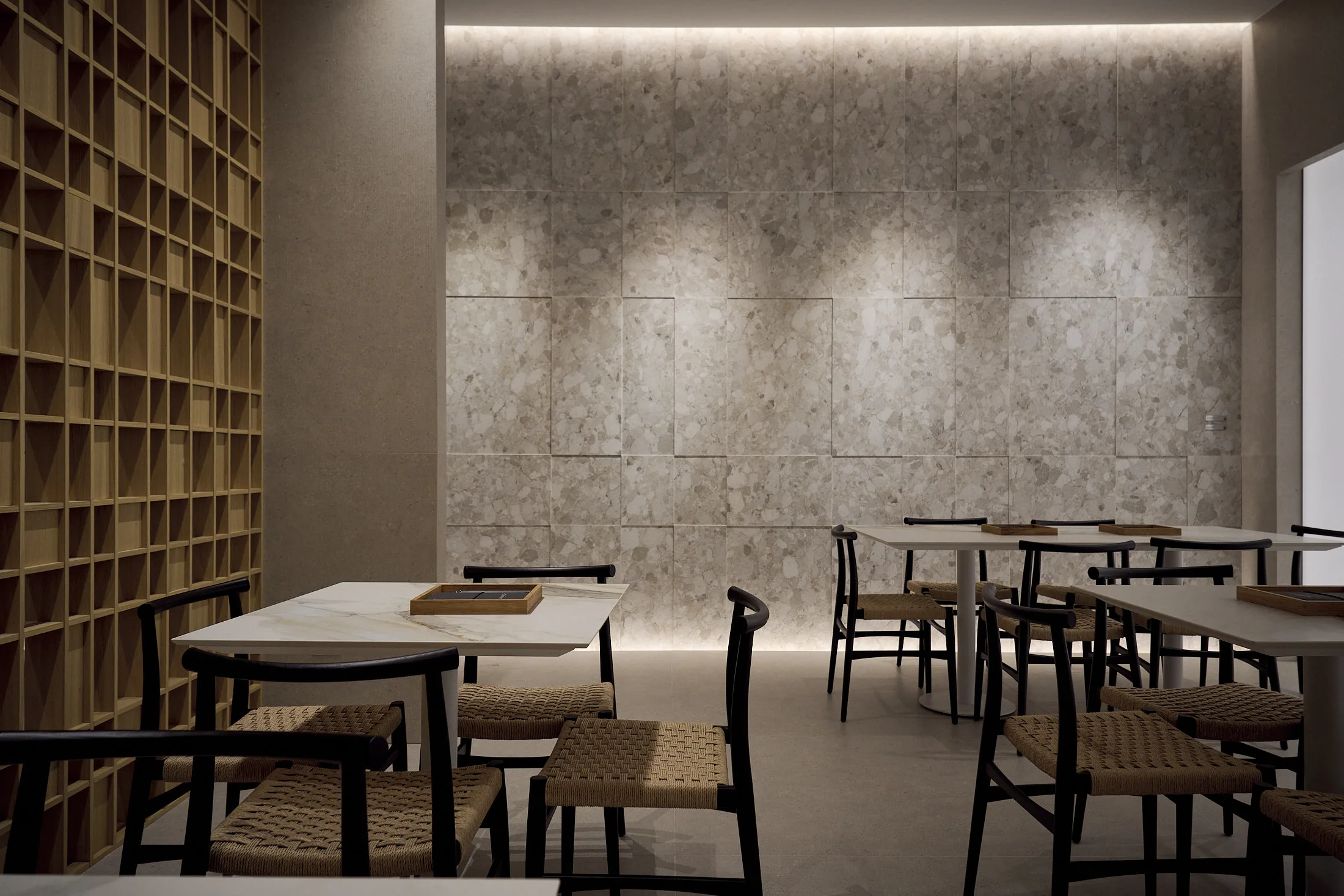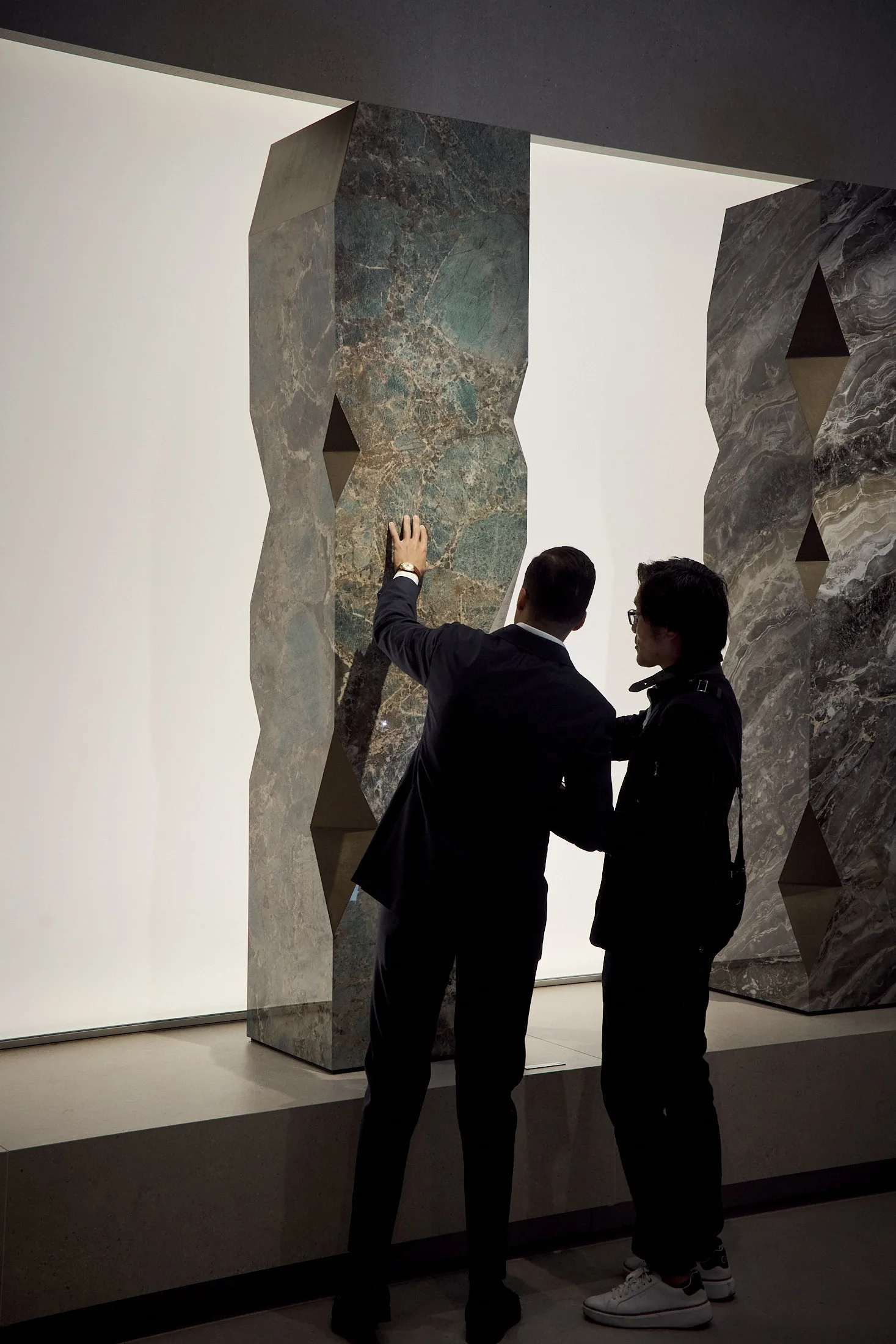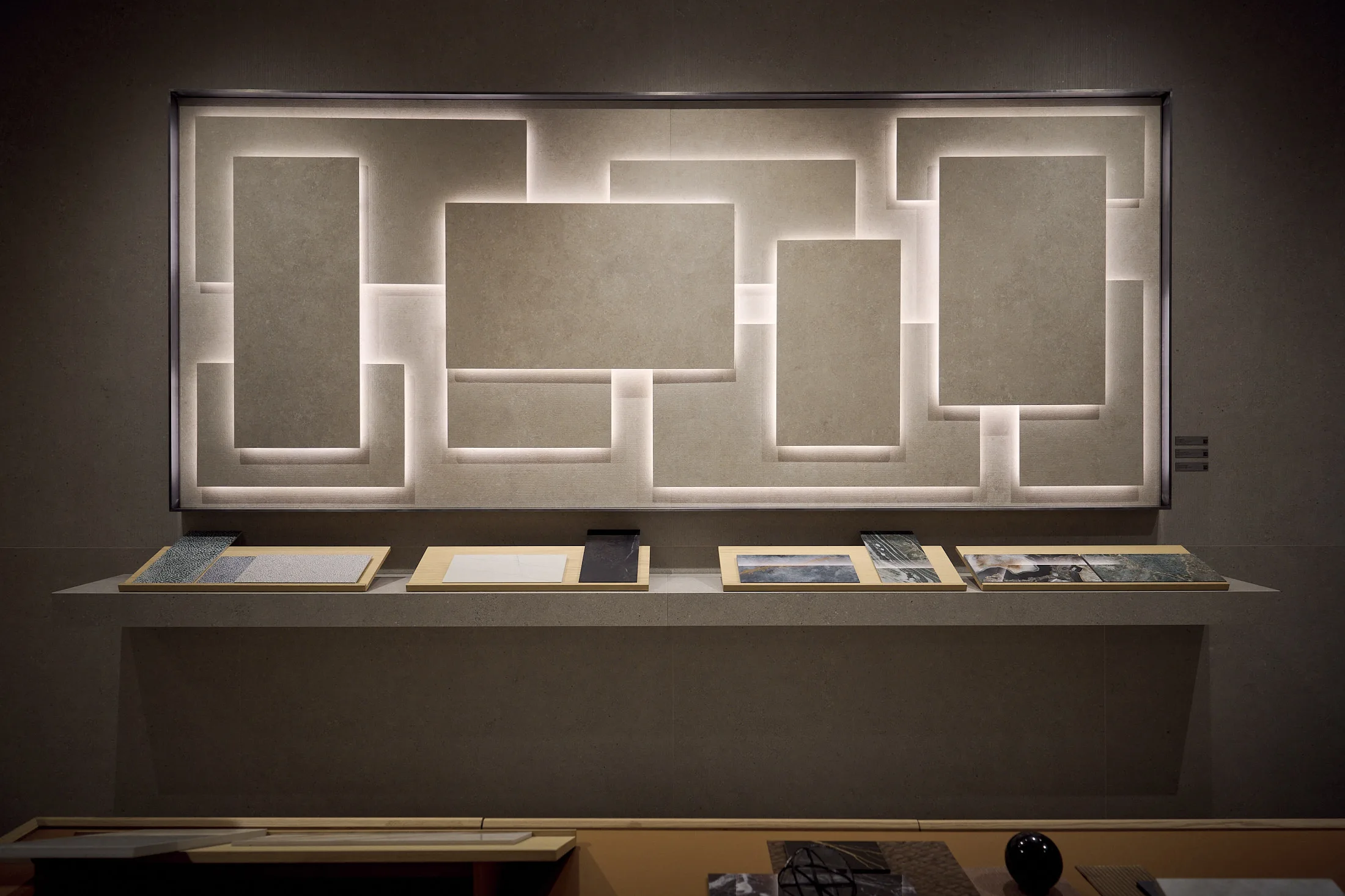Alongside Arkèon, an immersive exhibition path takes shape, where large-format porcelain stoneware surfaces become a powerful design tool to define volumes and architectures. These versatile, coherent, and distinctive solutions are ready to intervene across a wide range of applications.