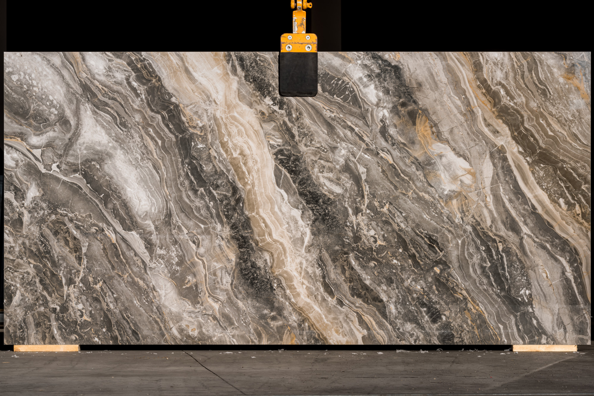 Orobico Luxe captures the elegance of Orobico marble, with a mix of grey, golden and brown tones blended into a fluid, dynamic pattern. Infinity slabs enhance the glossy finish and depth of the veining, making them perfect for scenographic interiors, decorative walls and high-end furnishing surfaces.