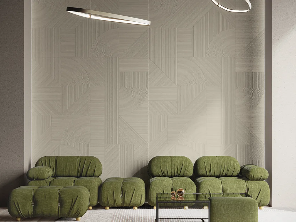 Le superfici tattili conquistano architetti e designer. Il grès porcellanato effetto pietra o cemento evolve verso finiture sempre più raffinate, capaci di combinare matericità e delicatezza. Il minimalismo diventa caldo, accogliente, multisensoriale. Le texture soft-touch trasmettono sensazioni reali sotto le dita, mentre la superficie interagisce con la luce in modo dinamico e naturale.
